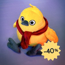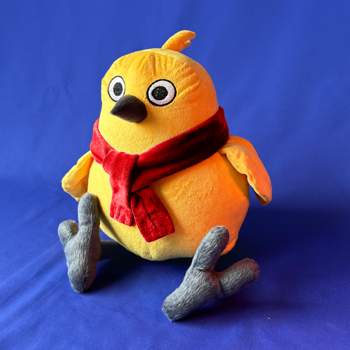 A pelúcia tem a medida aproximada de 25x25cm, é feita em tecido acrílico e poliéster, com enchimento de espuma.
