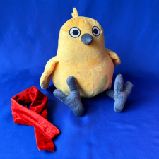 Vem incluso neste produto: cachecol de tecido (o cachecol não está preso na pelúcia, apenas amarrado, e pode ser removido).