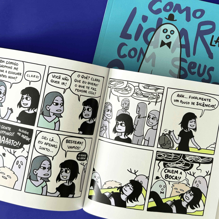 Aqui você vai encontrar um compilado de tirinhas contando sobre as aventuras triviais de uma menina comum lidando com os três fantasmas que a acompanham.
